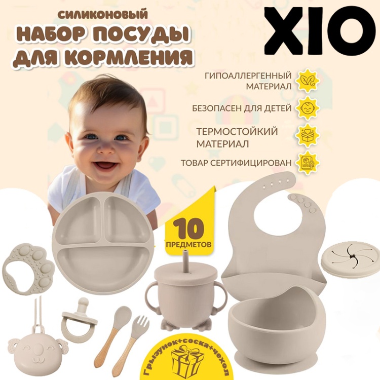 Недавно купил силиконовый набор посуды для кормления XIO для нашего малыша, и я очень доволен этим приобретением. Этот набор действительно удобен и практичен, включает в себя 10 предметов, каждый из которых оказался полезным и функциональным.