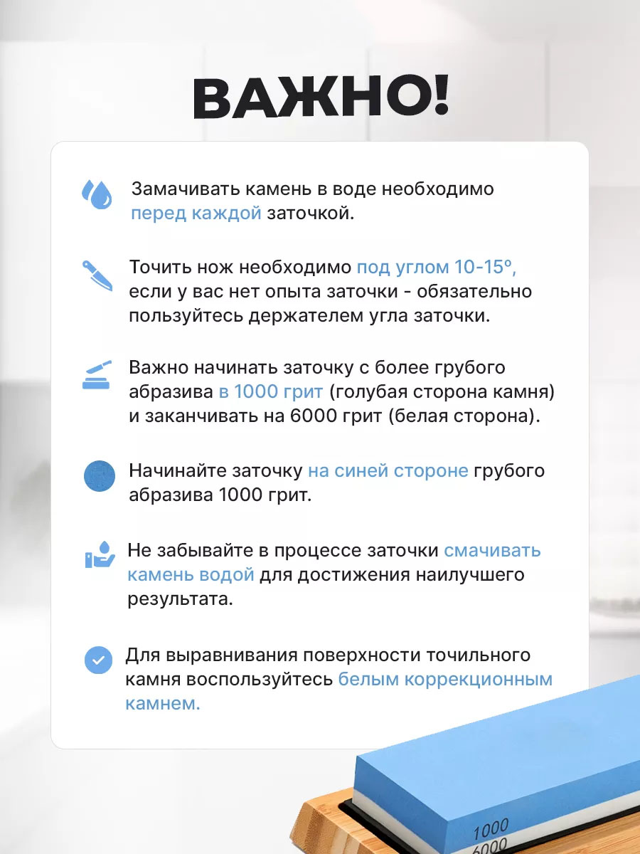 При выборе точильного водного камня важно учесть тип инструмента, который вы собираетесь затачивать, и определить необходимую грануляцию для достижения желаемого результата. Точильные водные камни являются важным инструментом для поддержания остроты лезвий и обеспечения безопасности и эффективности резки. Водный точильный камень купить! Водный точильный камень для ножей!