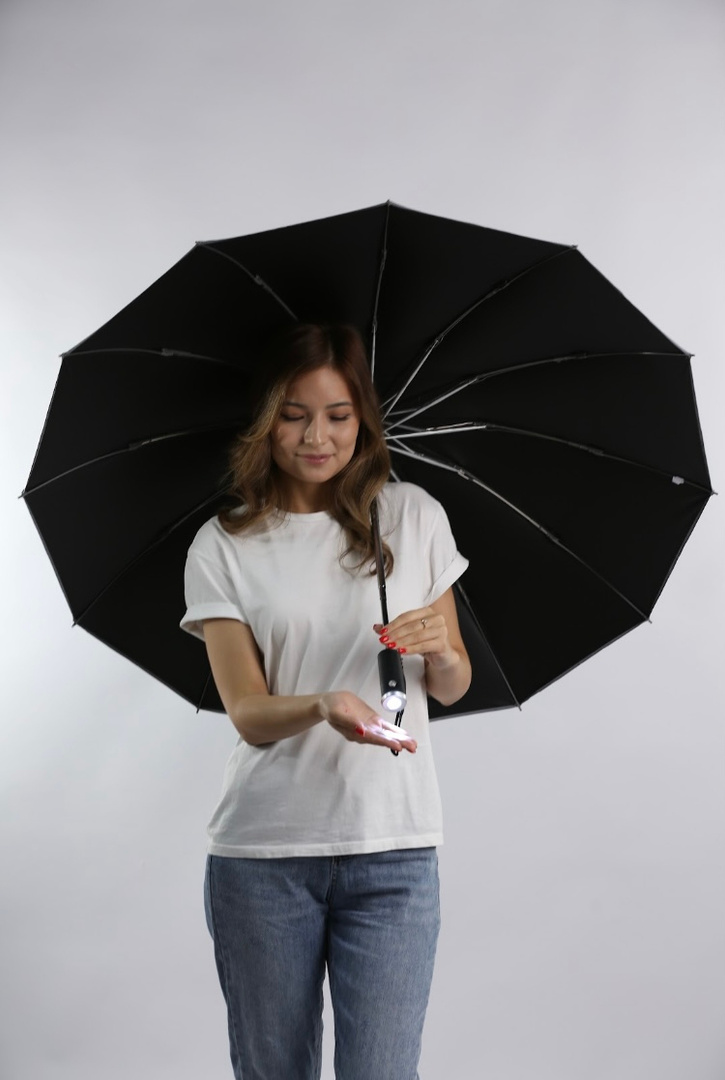 - Компактный размер: Благодаря возможности обратного сложения, зонт помещается в сумку или автомобиль, занимая минимум места.